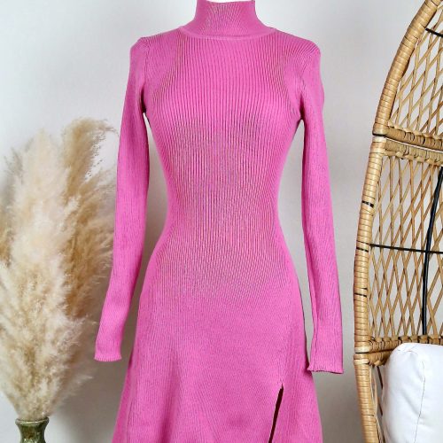 All The Rumors Are True Long Sleeve Ribbed Sweater Dress in Magenta