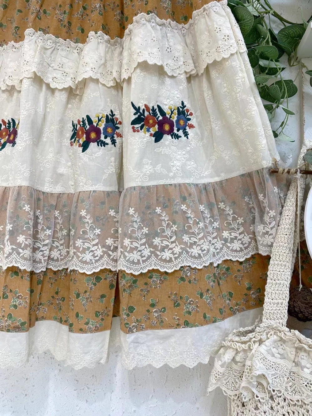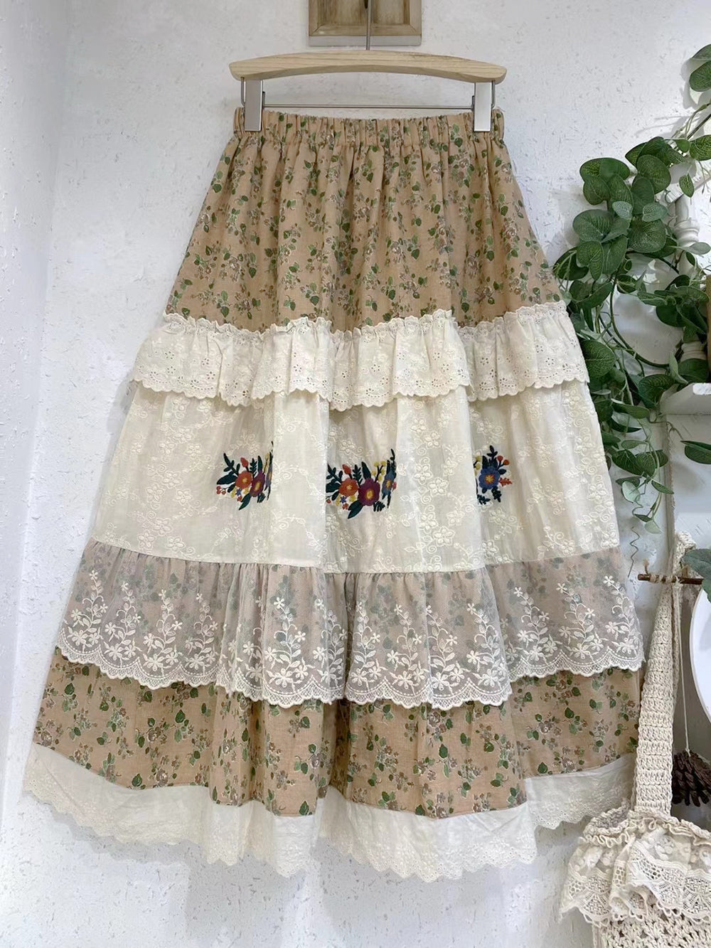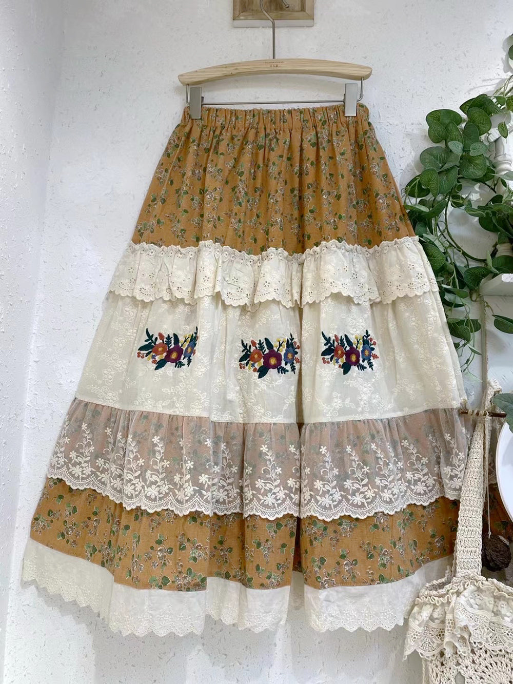 / Embroidered Lace Trim Floral Skirt
