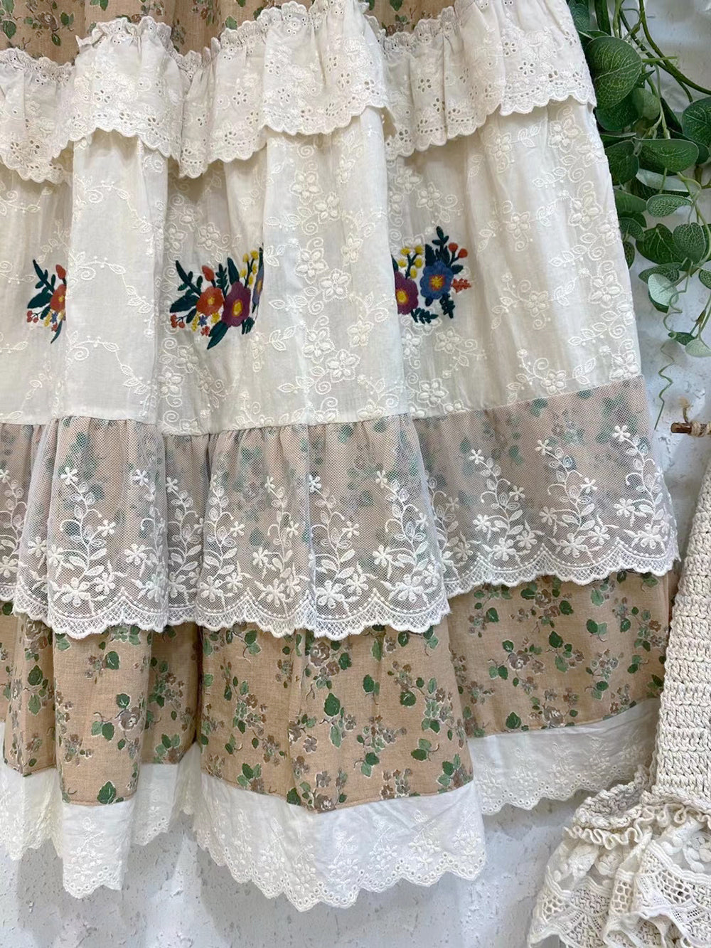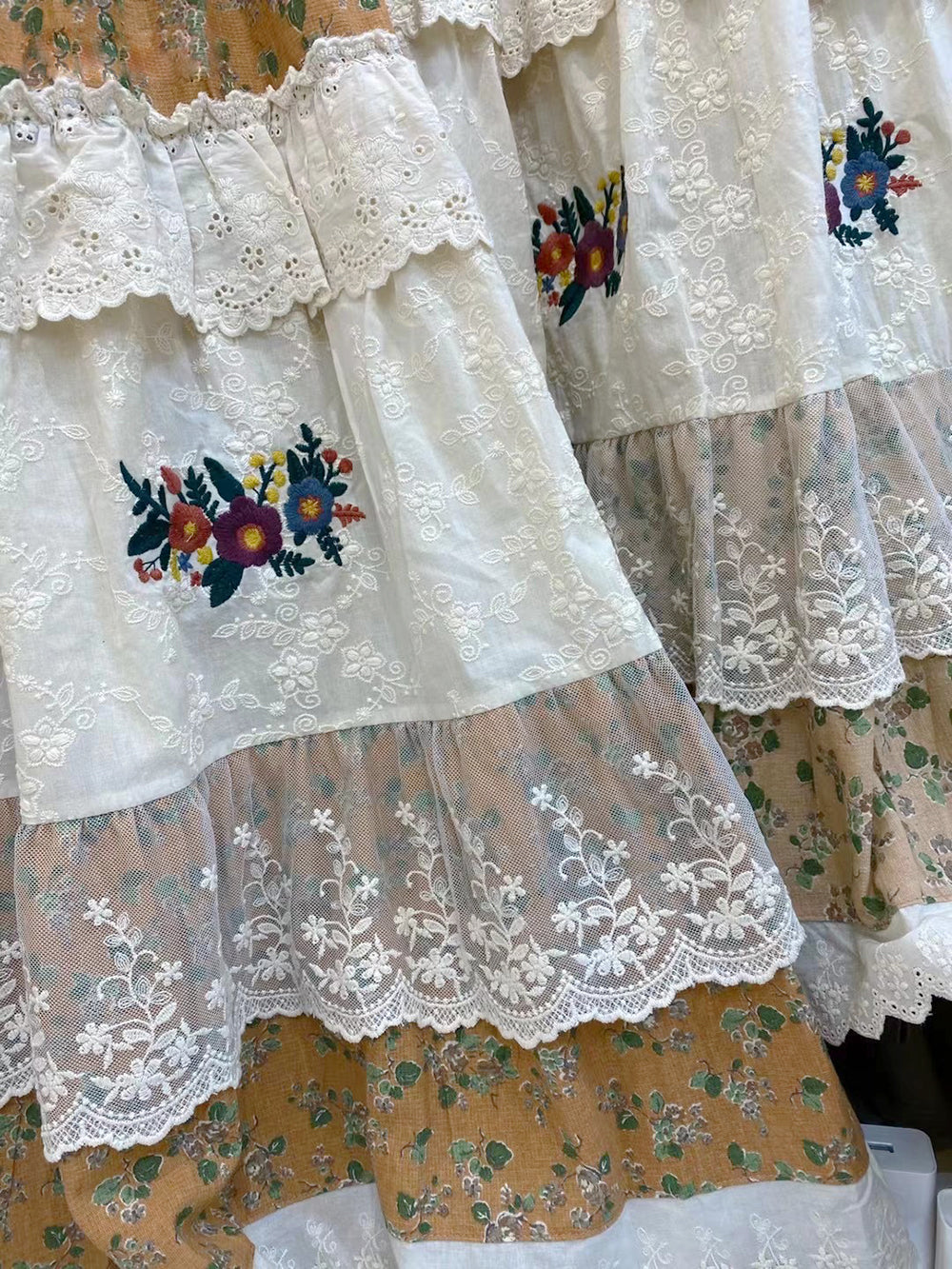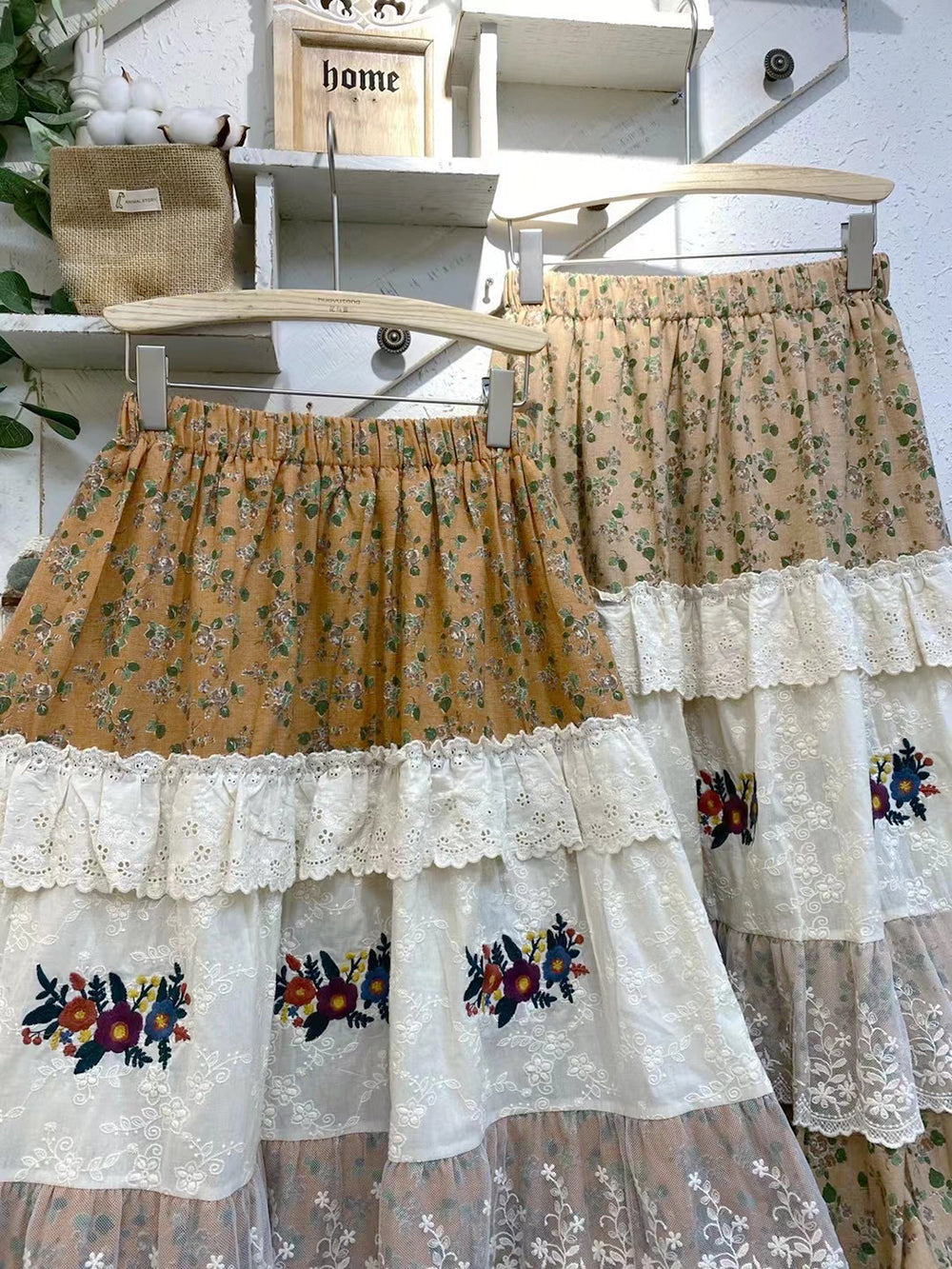 / Embroidered Lace Trim Floral Skirt