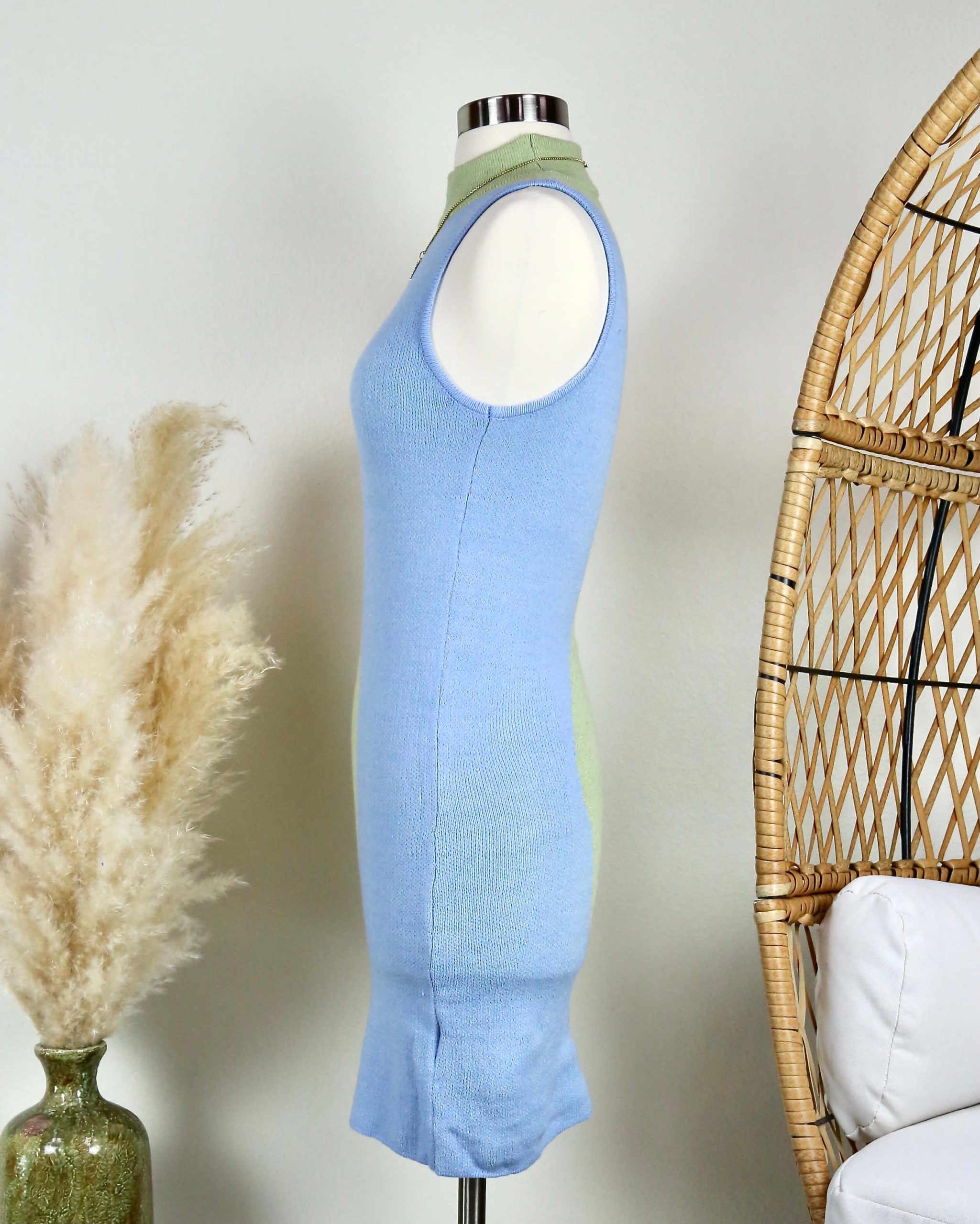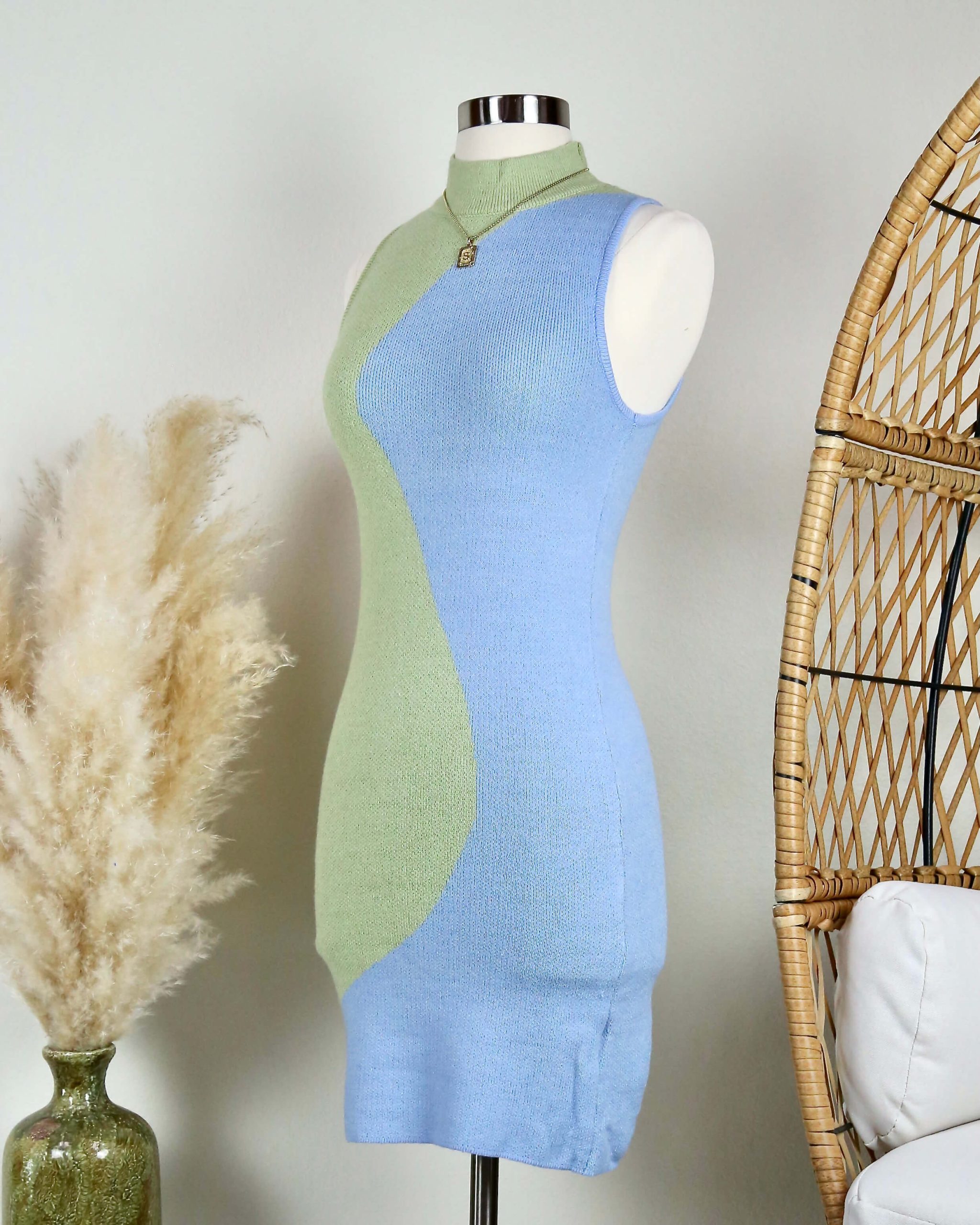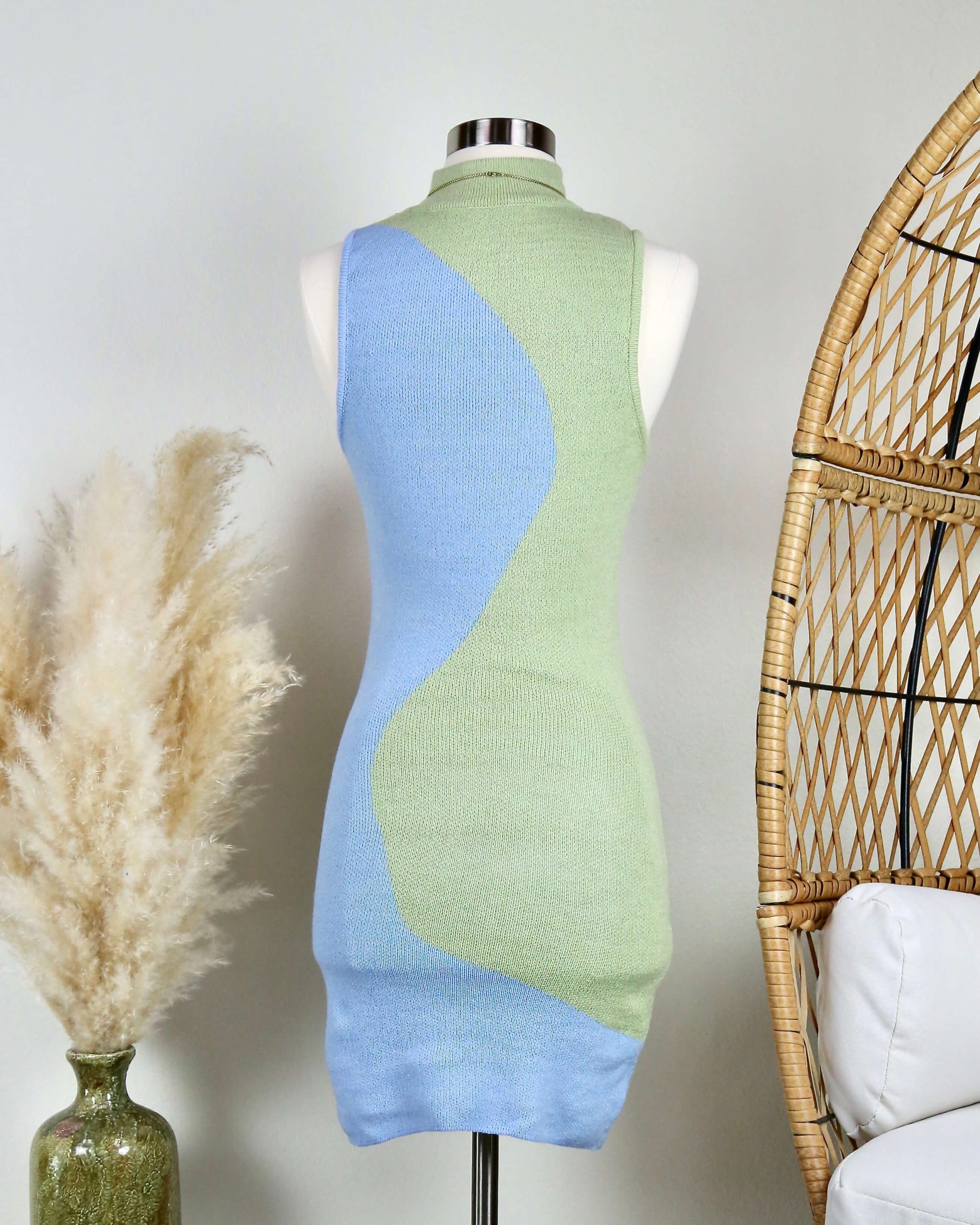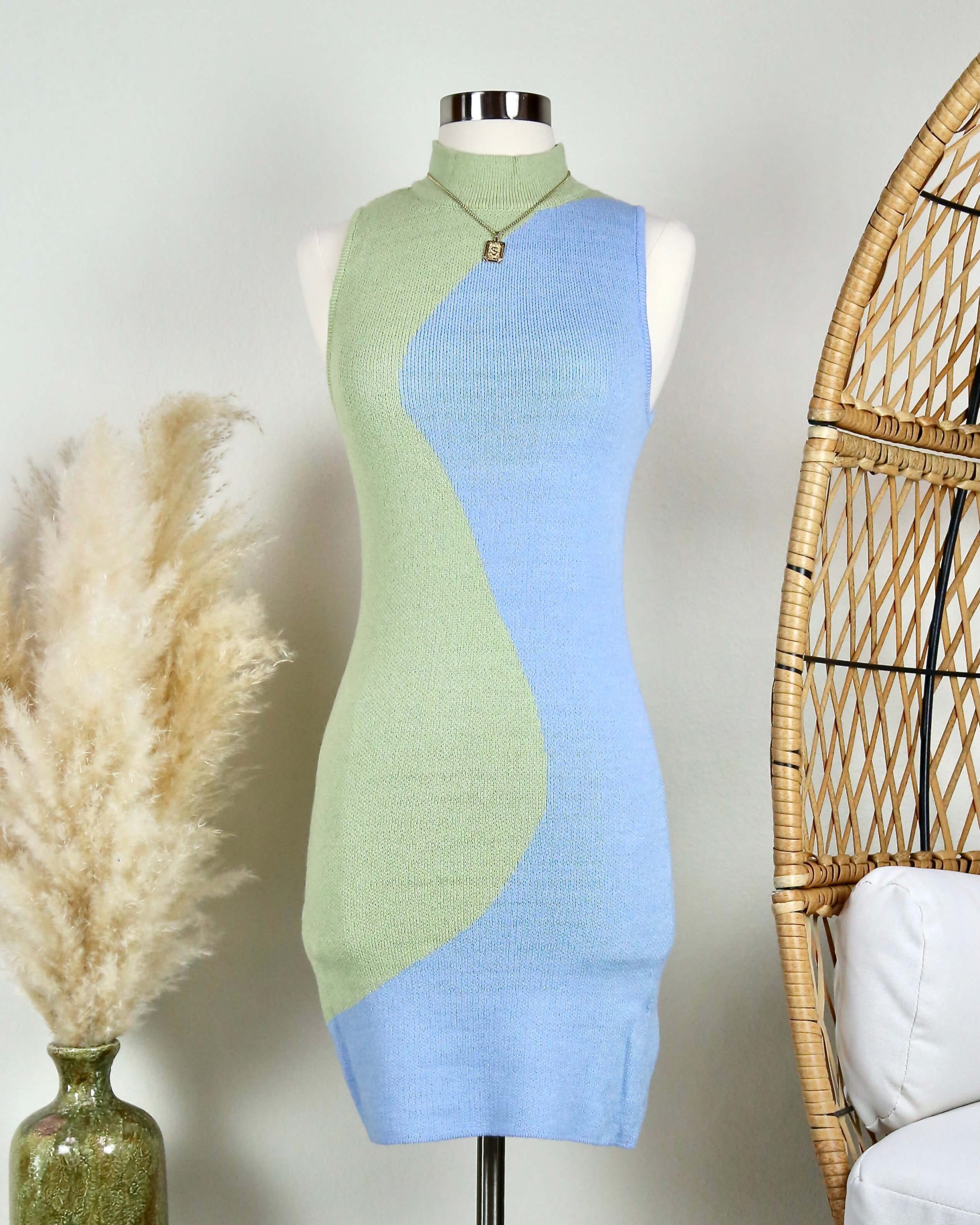 Elevate your fall and winter wardrobe with the mixed feelings mock neck knit mini sweater dress. Featuring a mock neck, color block design, and sleeveless look.