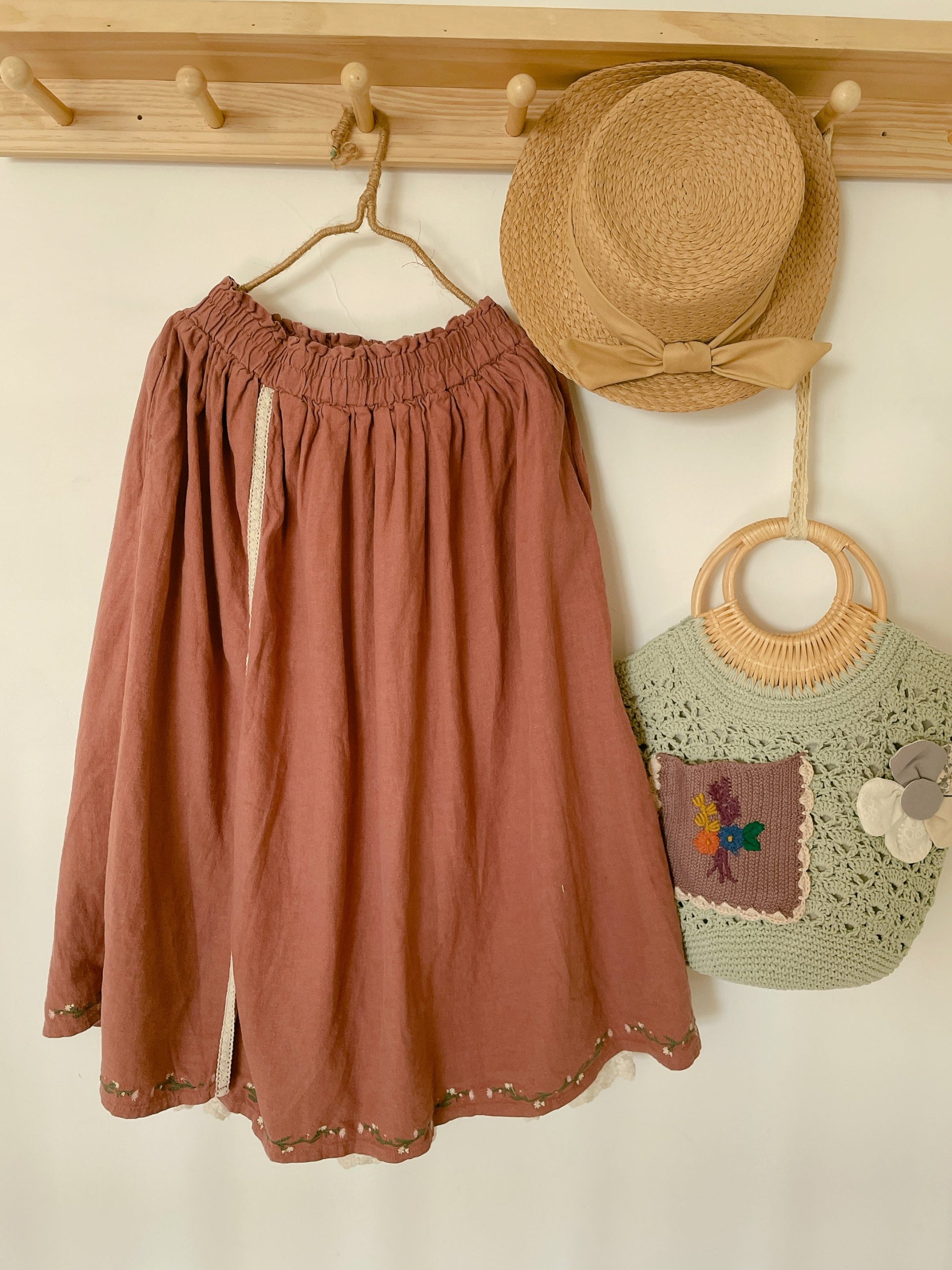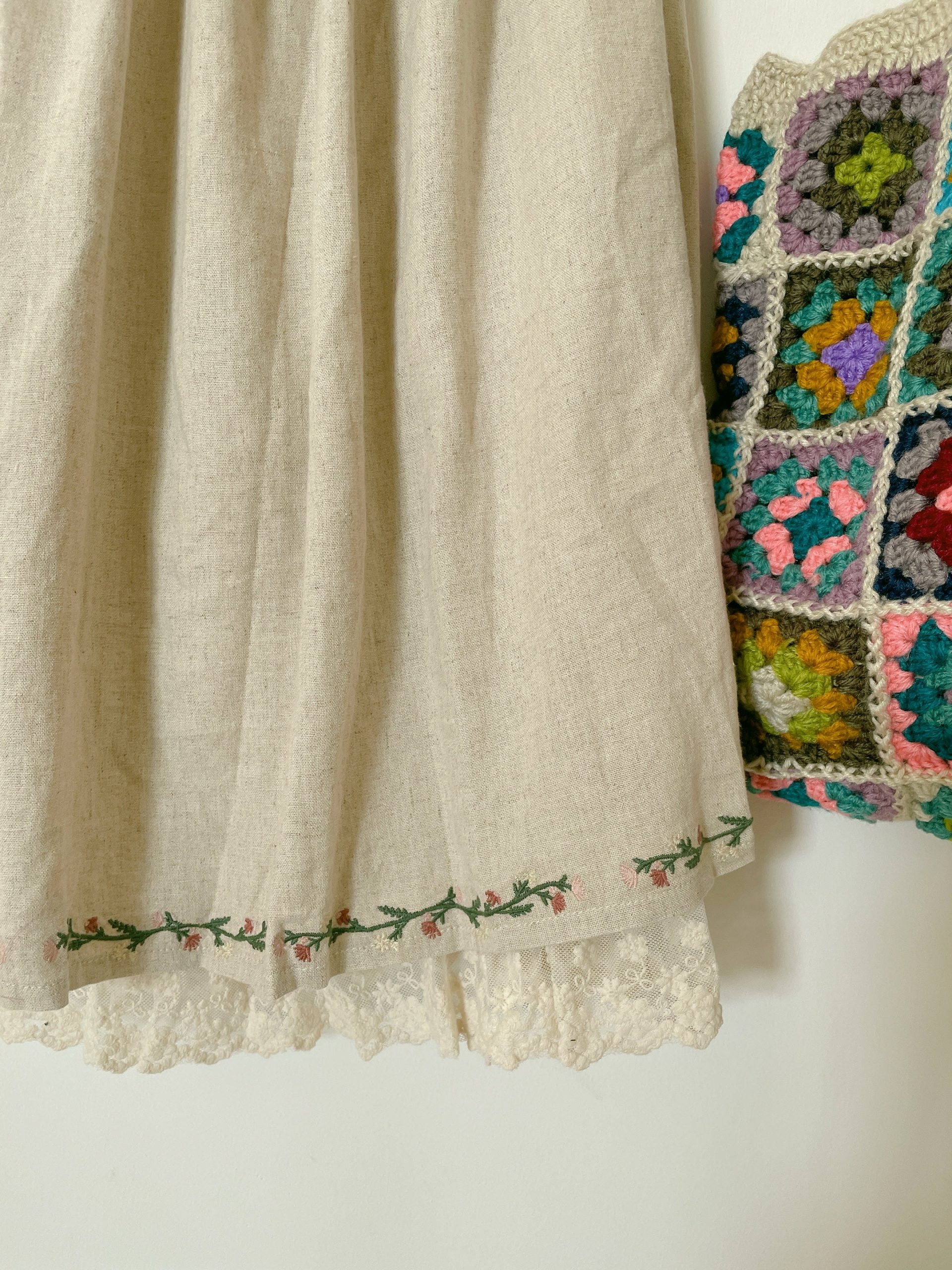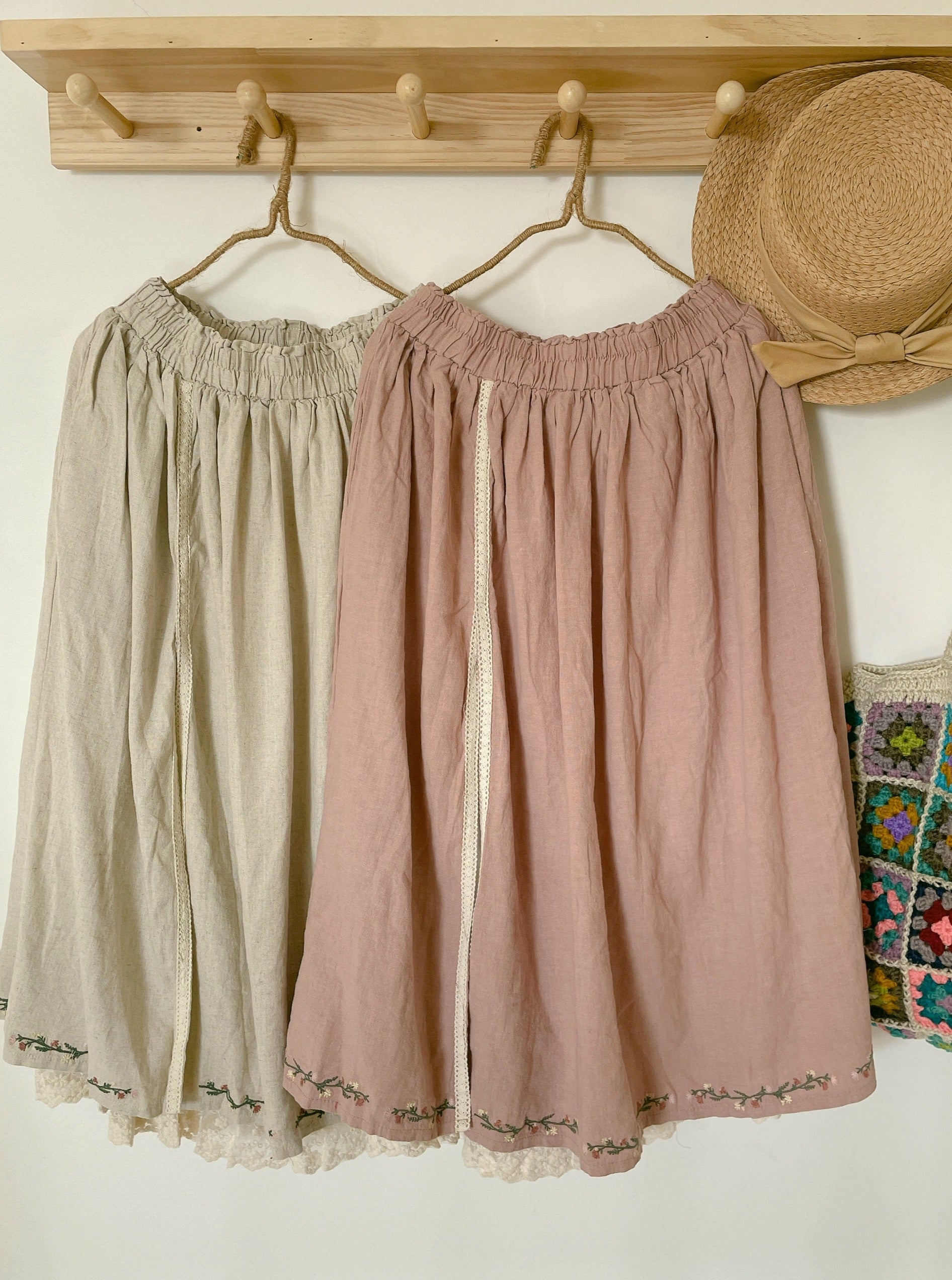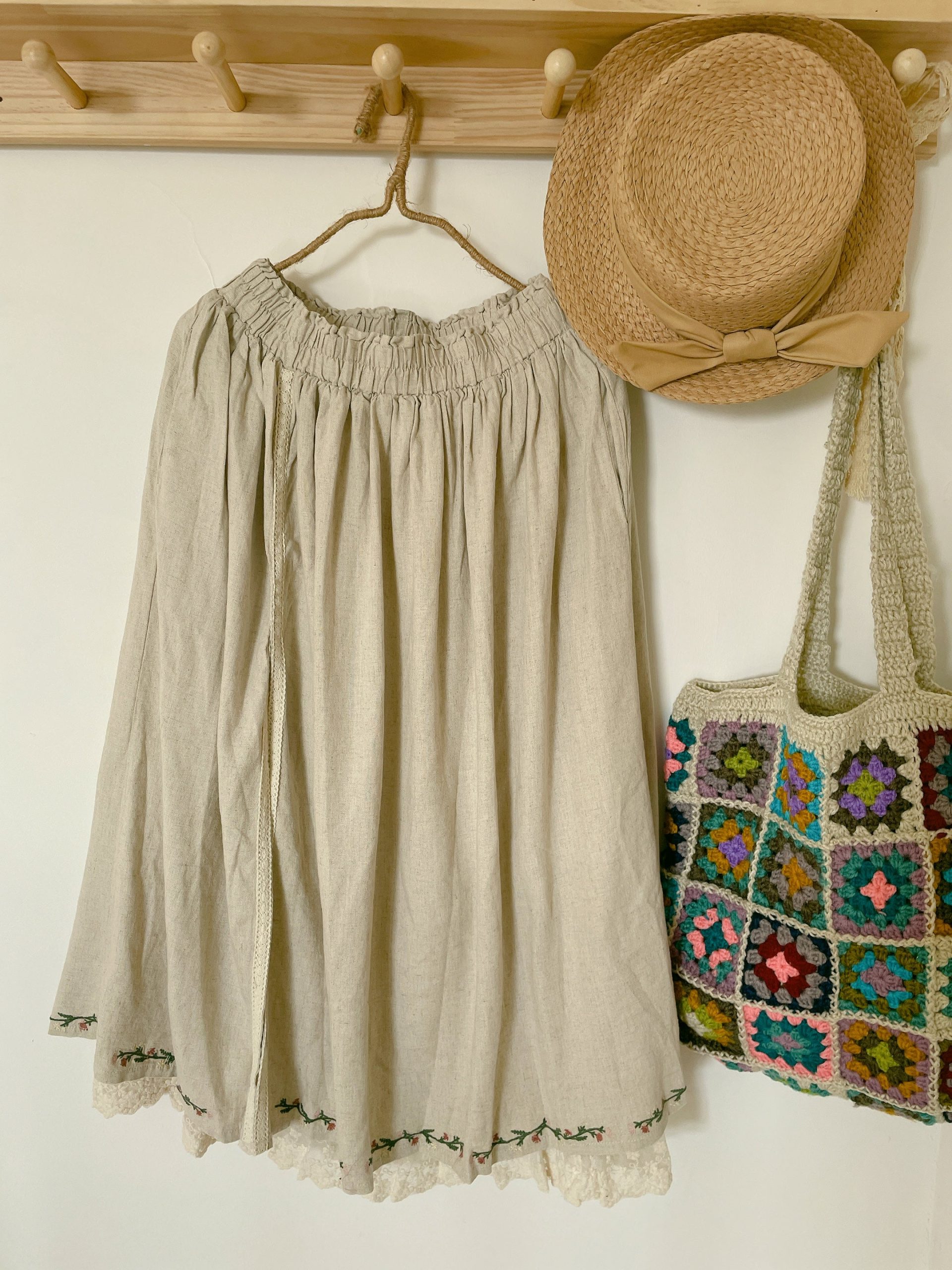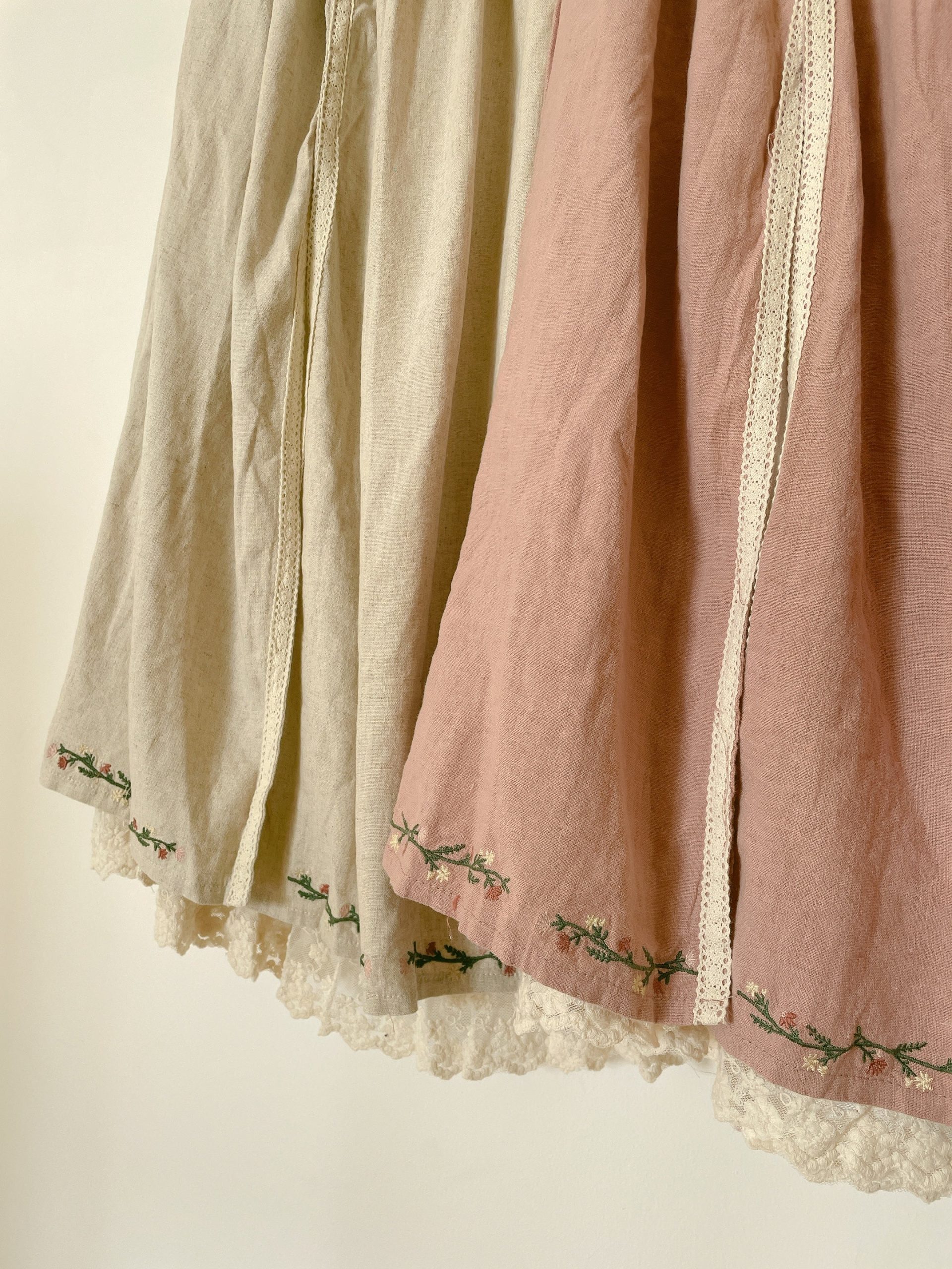 / Plaidflannelshirt Embroidered Linen Skirt
