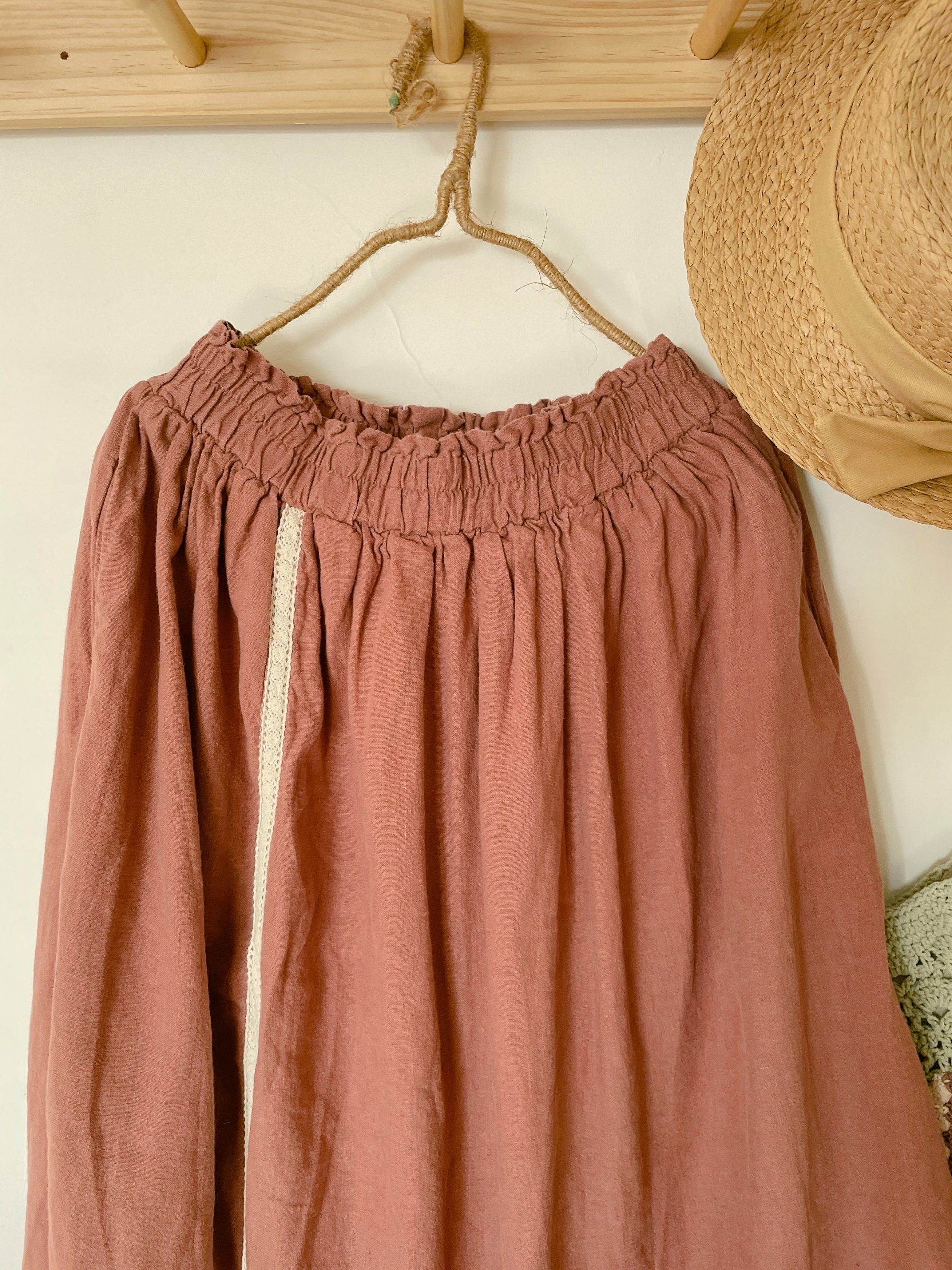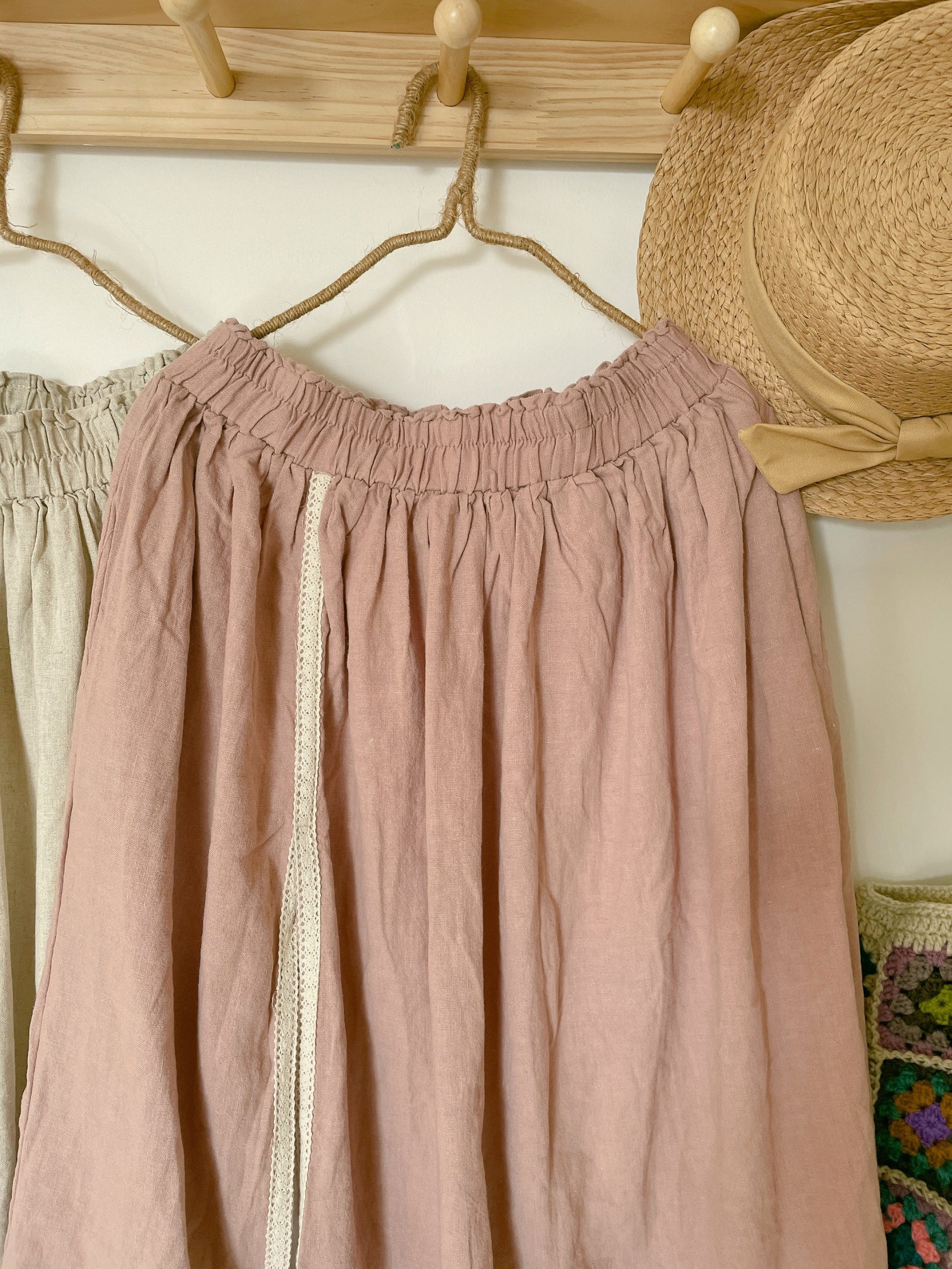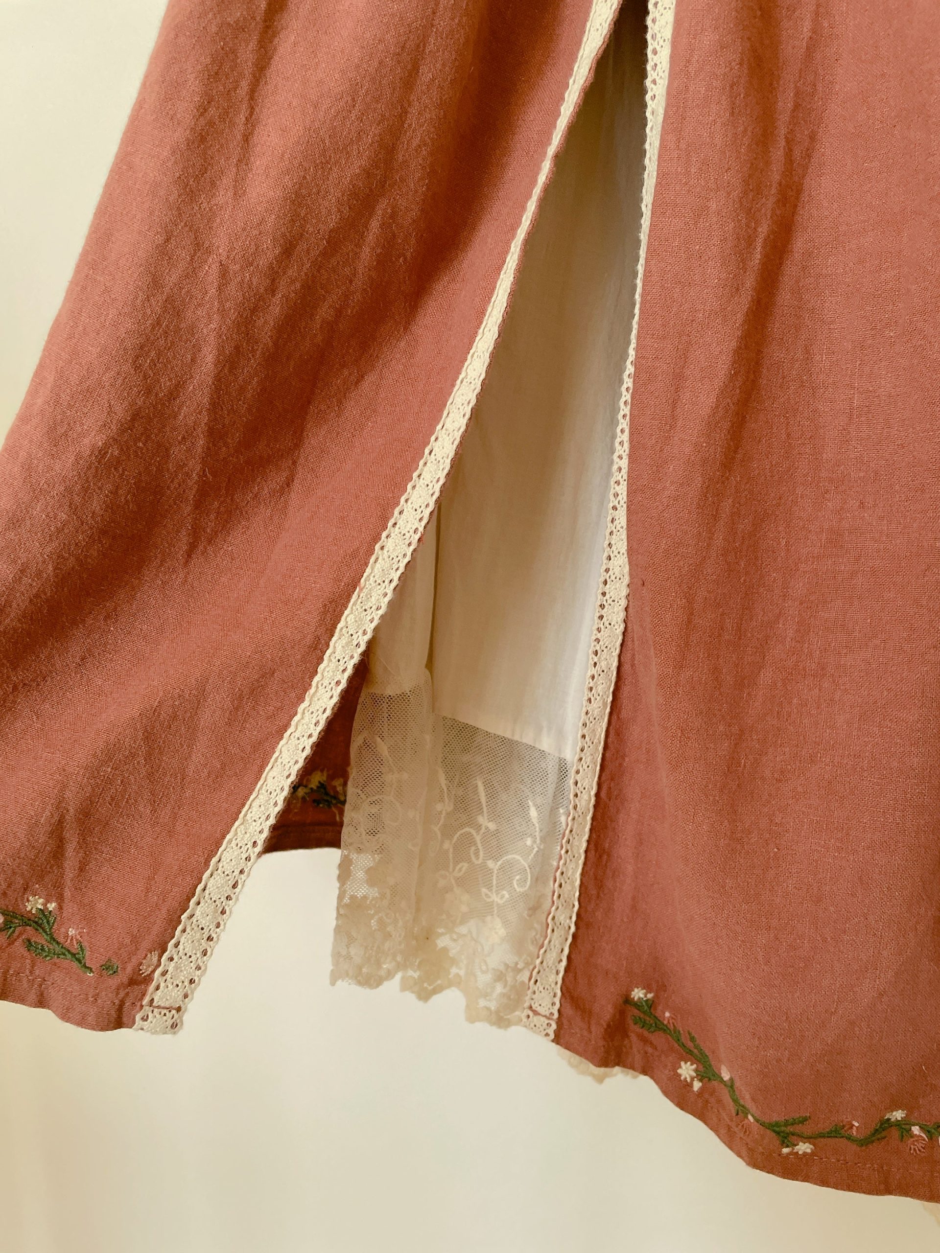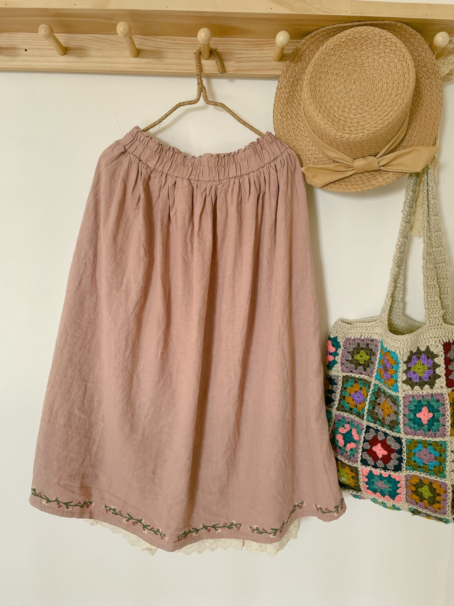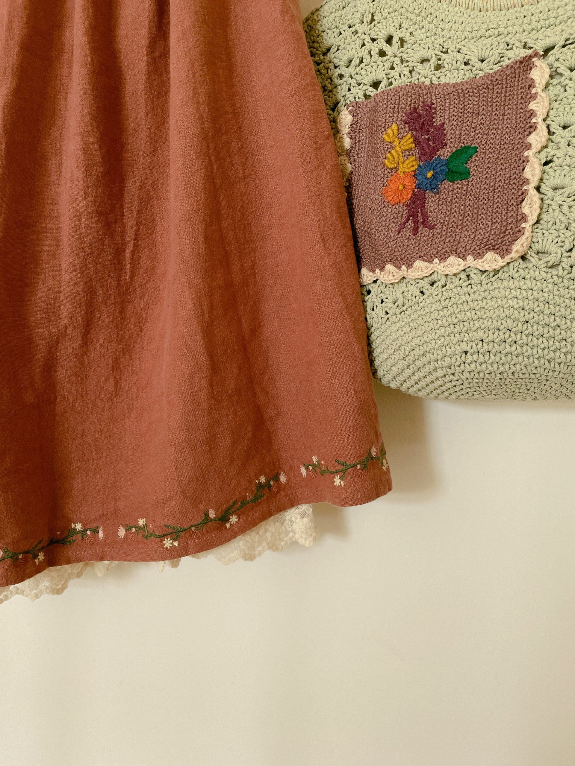 / Plaidflannelshirt Embroidered Linen Skirt