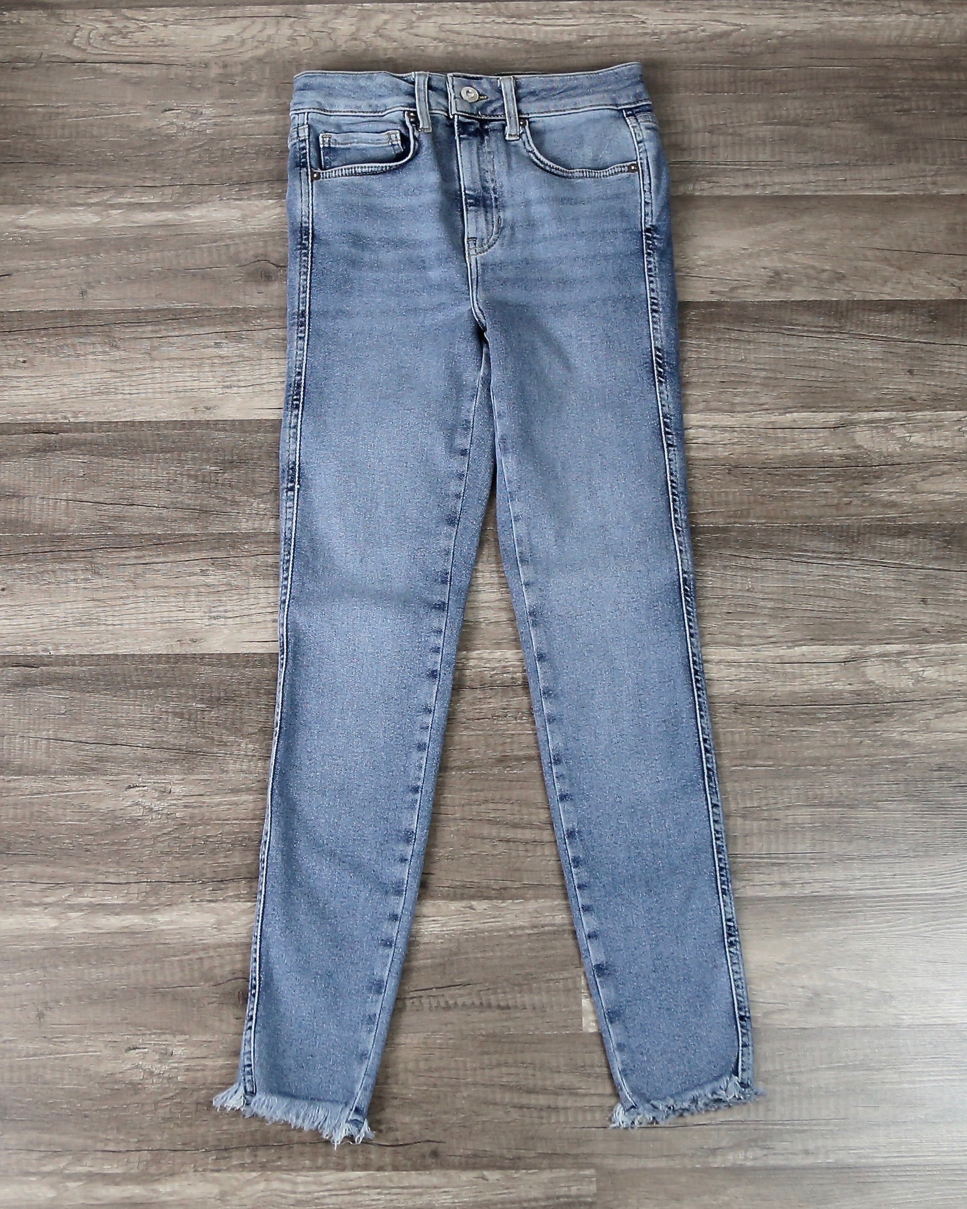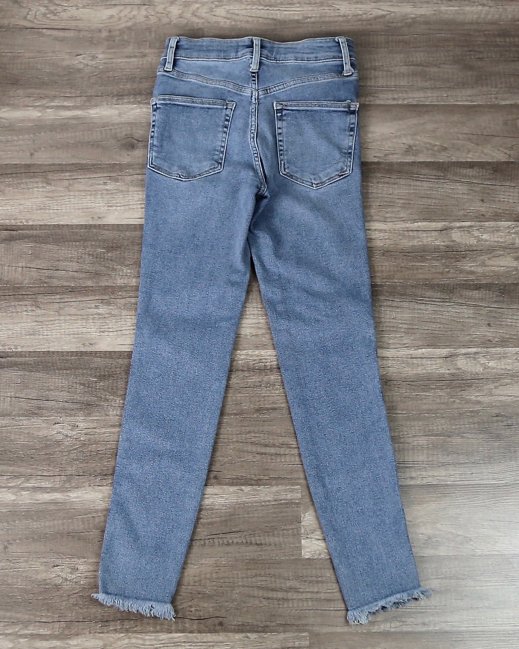Complement your effortlessly chic style with the Plaidflannelshirt Raw High-Rise Jeggings. These high-rise jeggings feature a skinny leg, raw-edge hem on a stretch denim fabrication, classic five-pocket styling, and tonal topstitching. The perfect bottoms for a day out, easily pairing with any top and your favorite shoes or sandals.