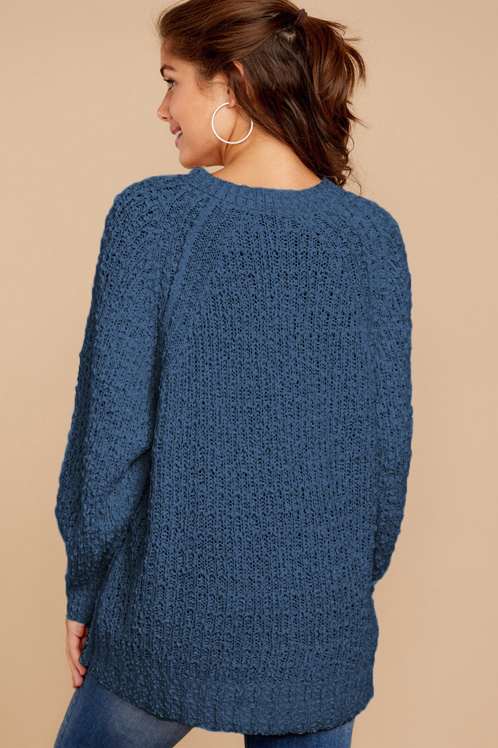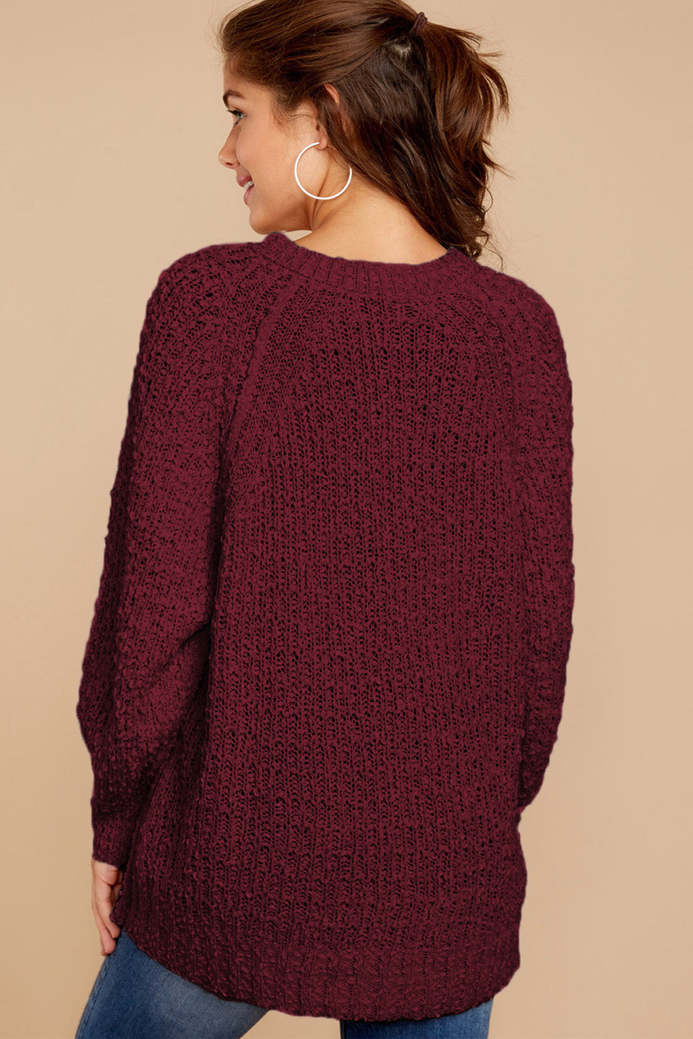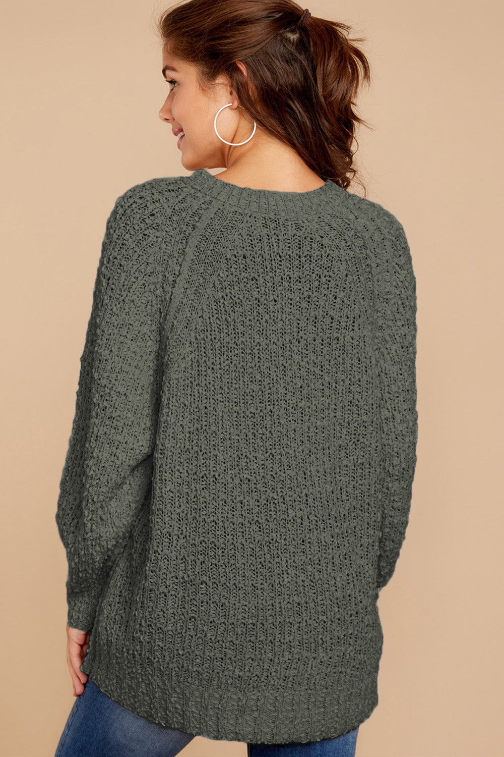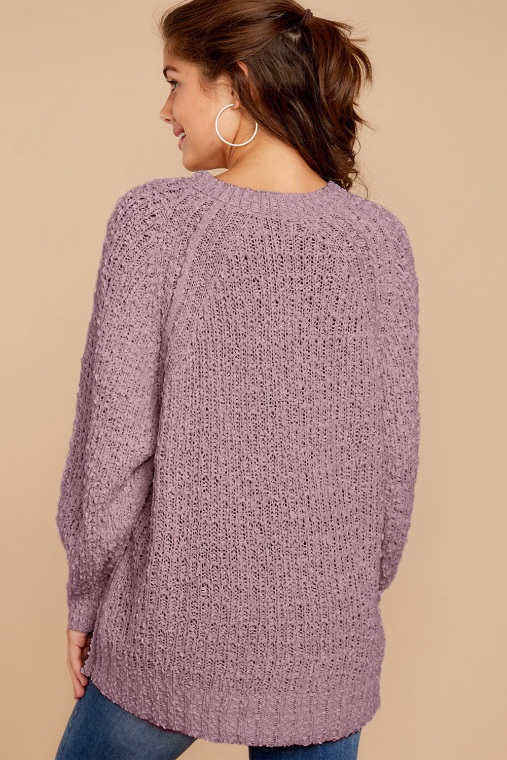 Popcorn Knit Raglan Sleeve Pullover Sweater quantity