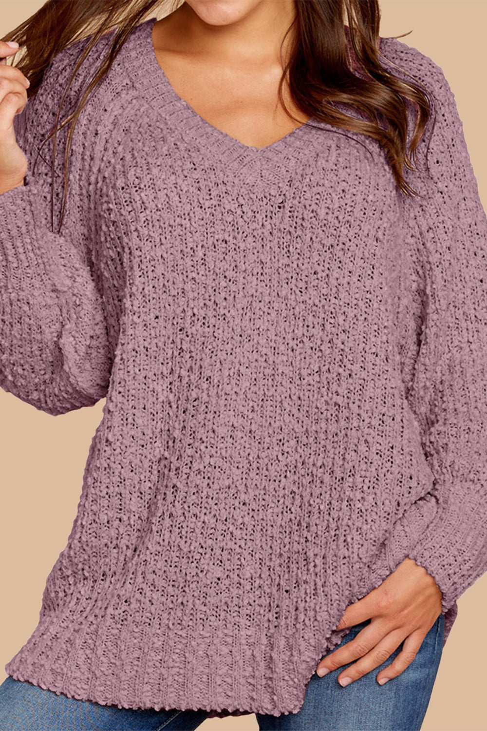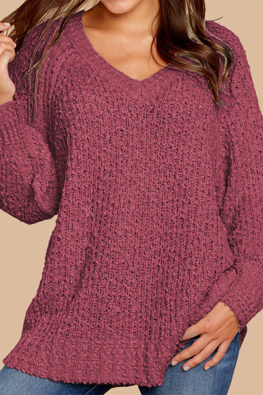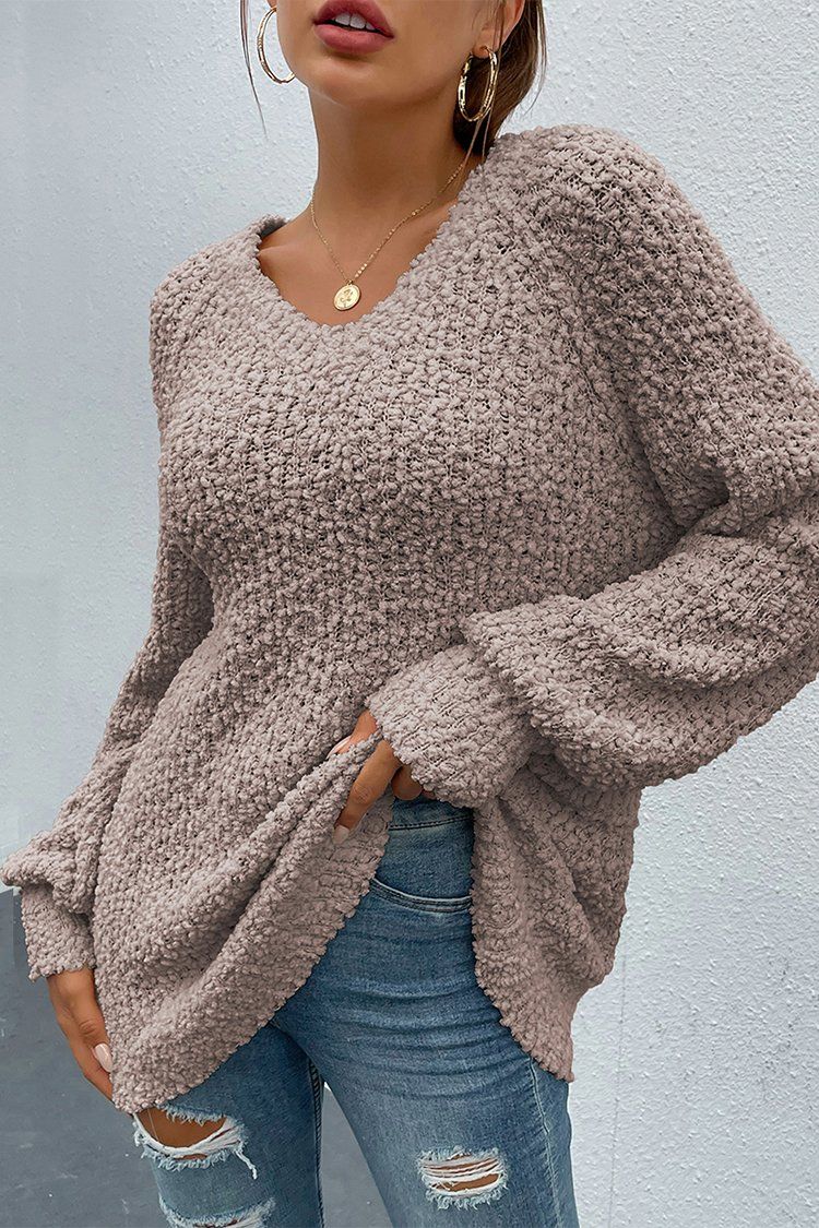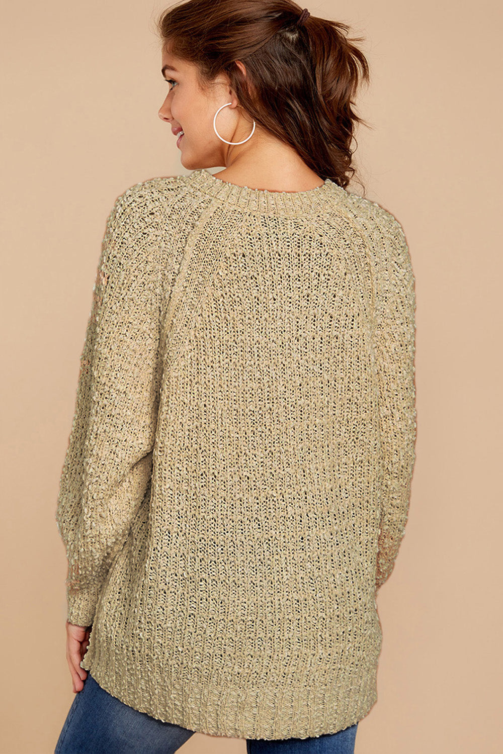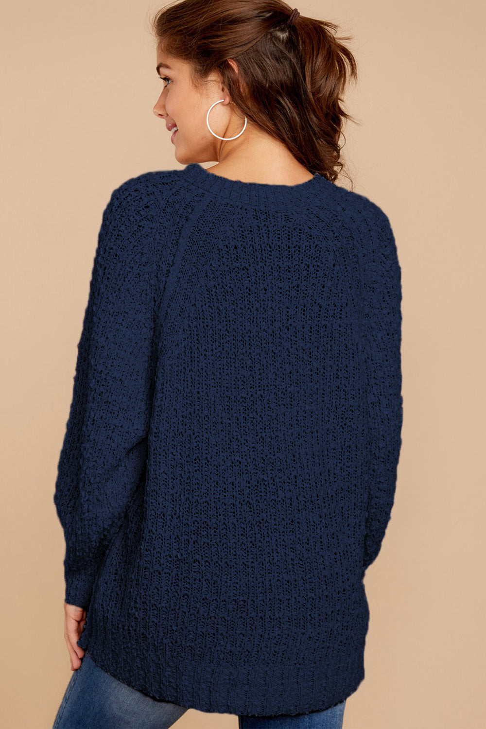 Popcorn Knit Raglan Sleeve Pullover Sweater quantity