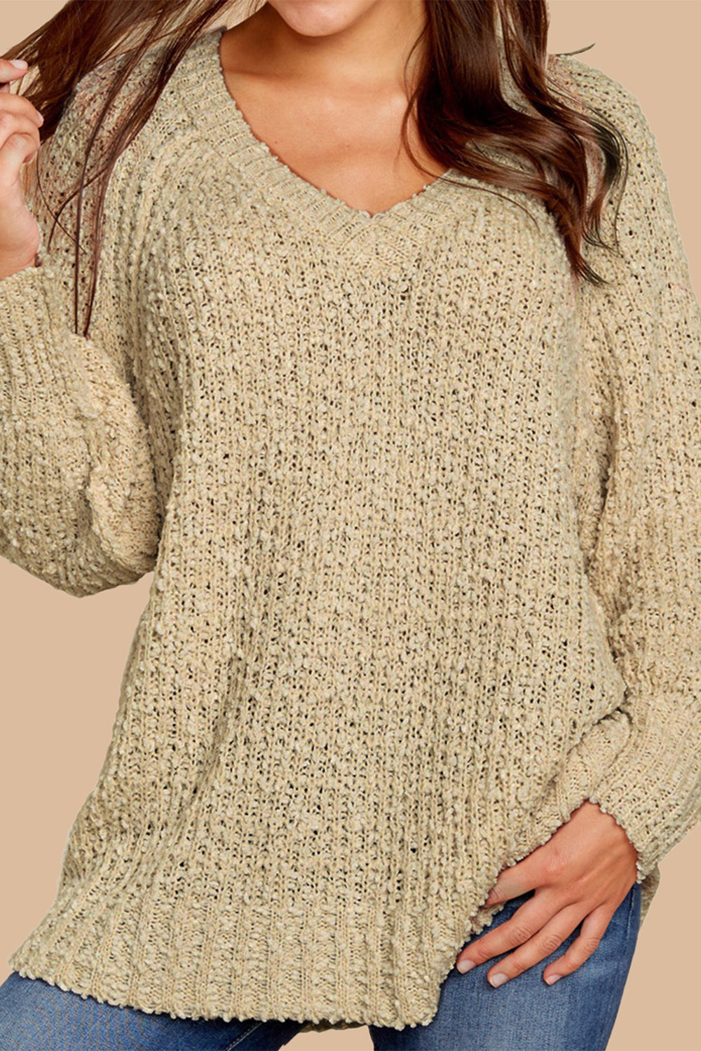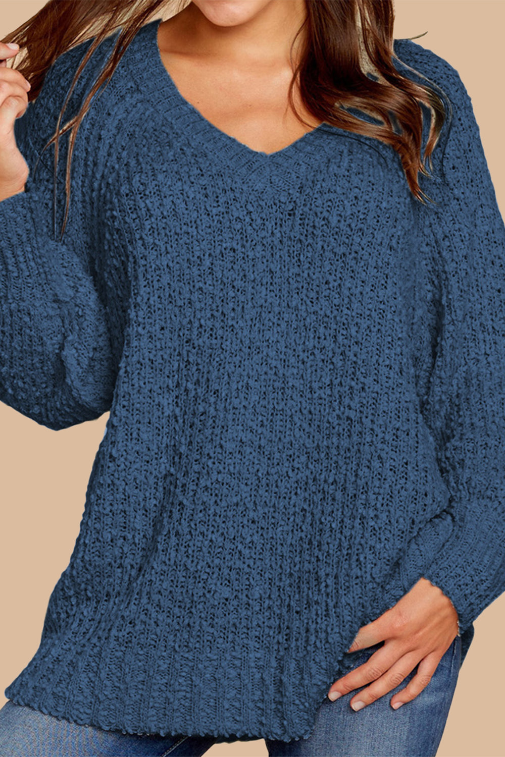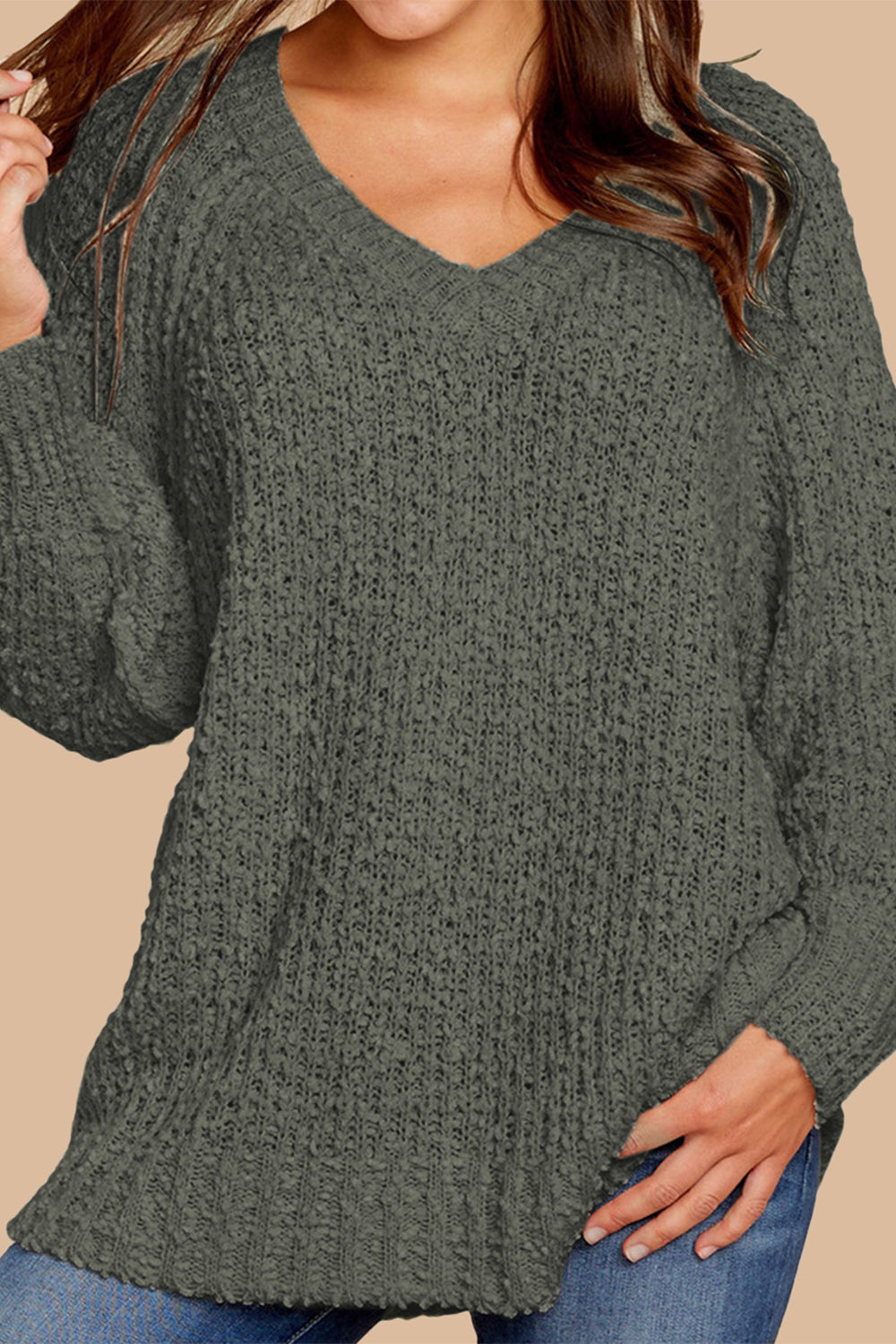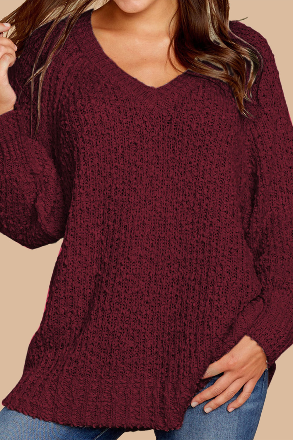Popcorn Knit Raglan Sleeve Pullover Sweater quantity
