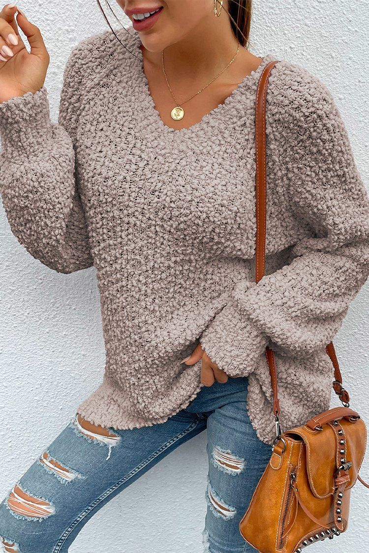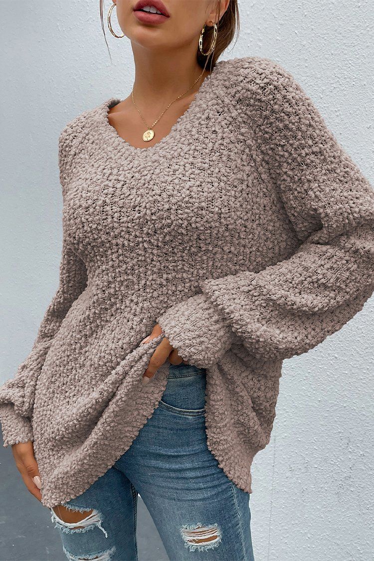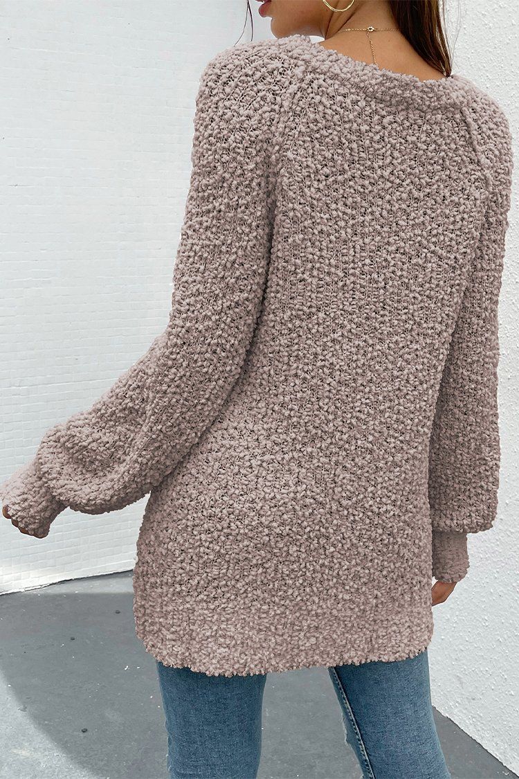 Popcorn Knit Raglan Sleeve Pullover Sweater