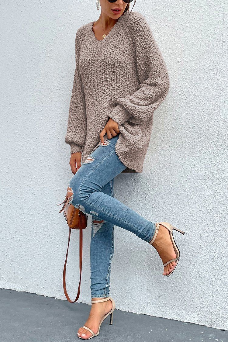 / Popcorn Knit Raglan Sleeve Pullover Sweater