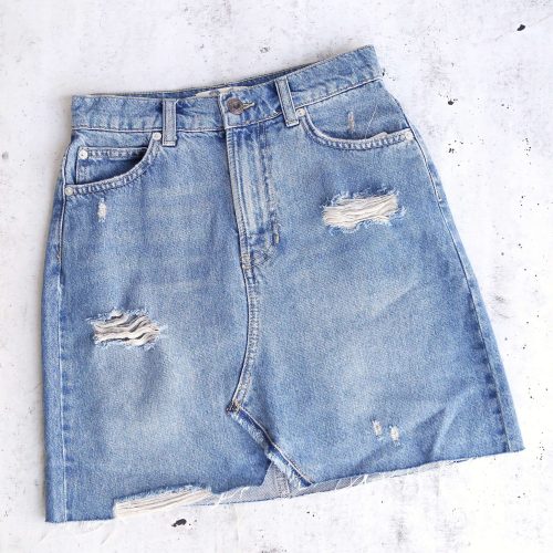 Plaidflannelshirt Hallie Distressed Denim Skirt in Midstone